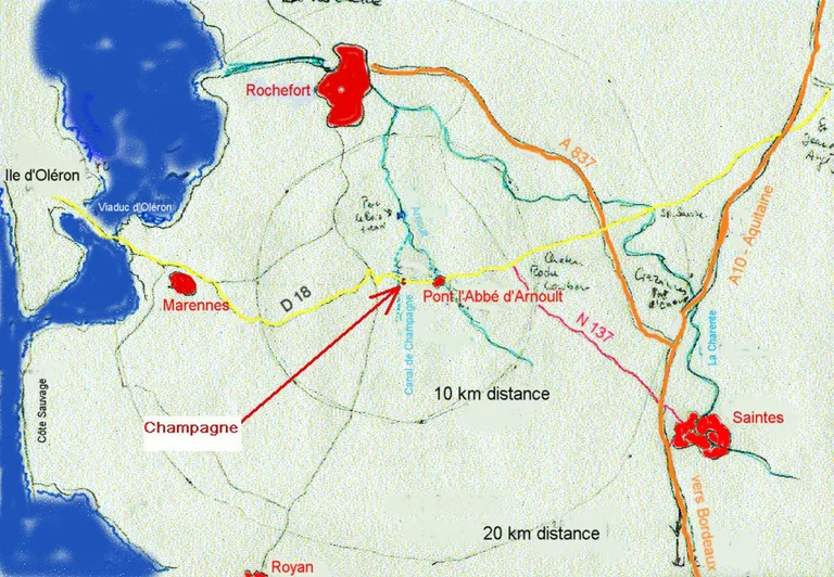 - Royan: 25 km, Rochefort: 12 km, La Rochelle: 40 km